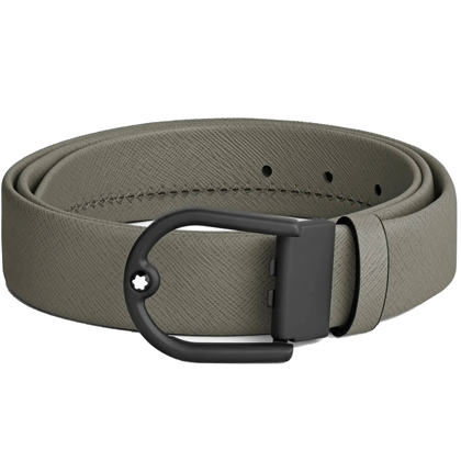 Кожаный ремень 35 мм из кожи серого цвета, пряжка в форме подковы от магазина премиальных ручек Premium Pens в Новочебоксарске.